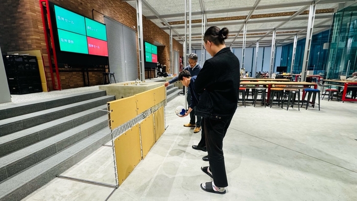 まずは、軽くて持ち運びやすいサイドフェンスの制作に取り組み、そのプロトタイプが完成したため、「THE GARAGE」にて成果報告会を開催します。学生が考えた製品アイデアやサイドフェンス開発の過程などの発表に加え、開発したサイドフェンスを使用した、ブラインドサッカー体験も実施します。ブラインドサッカーが抱えるさまざまな課題や、障がいのある人とない人が混ざり合って楽しめるスポーツの在り方について考える機会とします。
