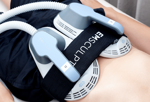 HIFEMは高密度焦点式電磁(High-Intensity Focused Electromagnetic)という技術で、非侵襲的に筋肉を鍛えることができる新しい手法です。MRIに等しい約1.8ステラもの強力な電磁を利用しており、体内に電気や熱を照射することなく、体の表面から深部にまで強力な筋収縮を引き起こします。この技術は医療痩身機器"エムスカルプト"に採用されています。
