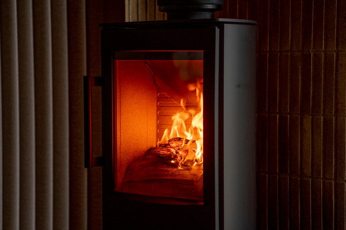 特別棟「湖邸 -Kotei-」には薪ストーブが各棟に完備。