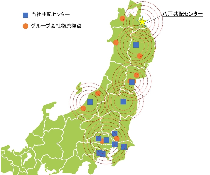 この度の八戸共配センターの新規開設により、東北全域を自社で対応することを可能とする配送ネットワーク構築が完成いたしました。