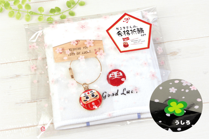 ■セット内容:だるまさんの合格祈願キーホルダー1個、だるまさんの刺繍入りハンドタオル1枚、ラッピングつき