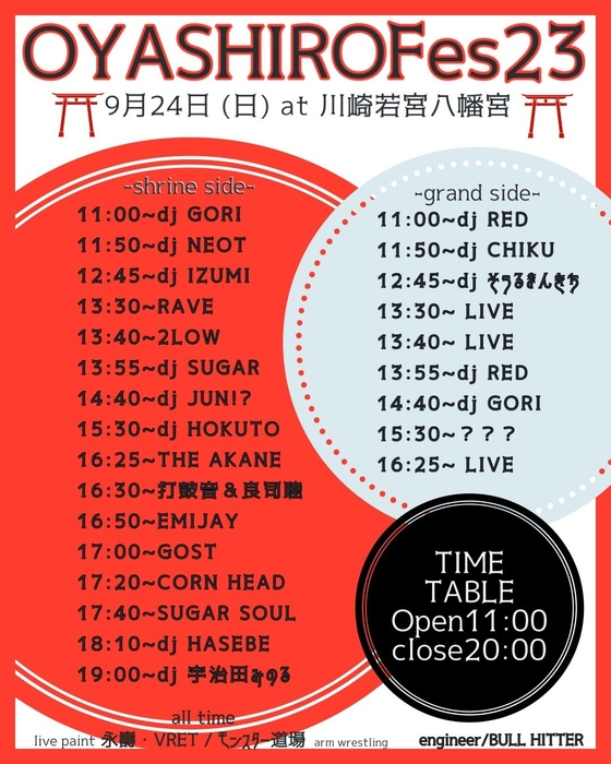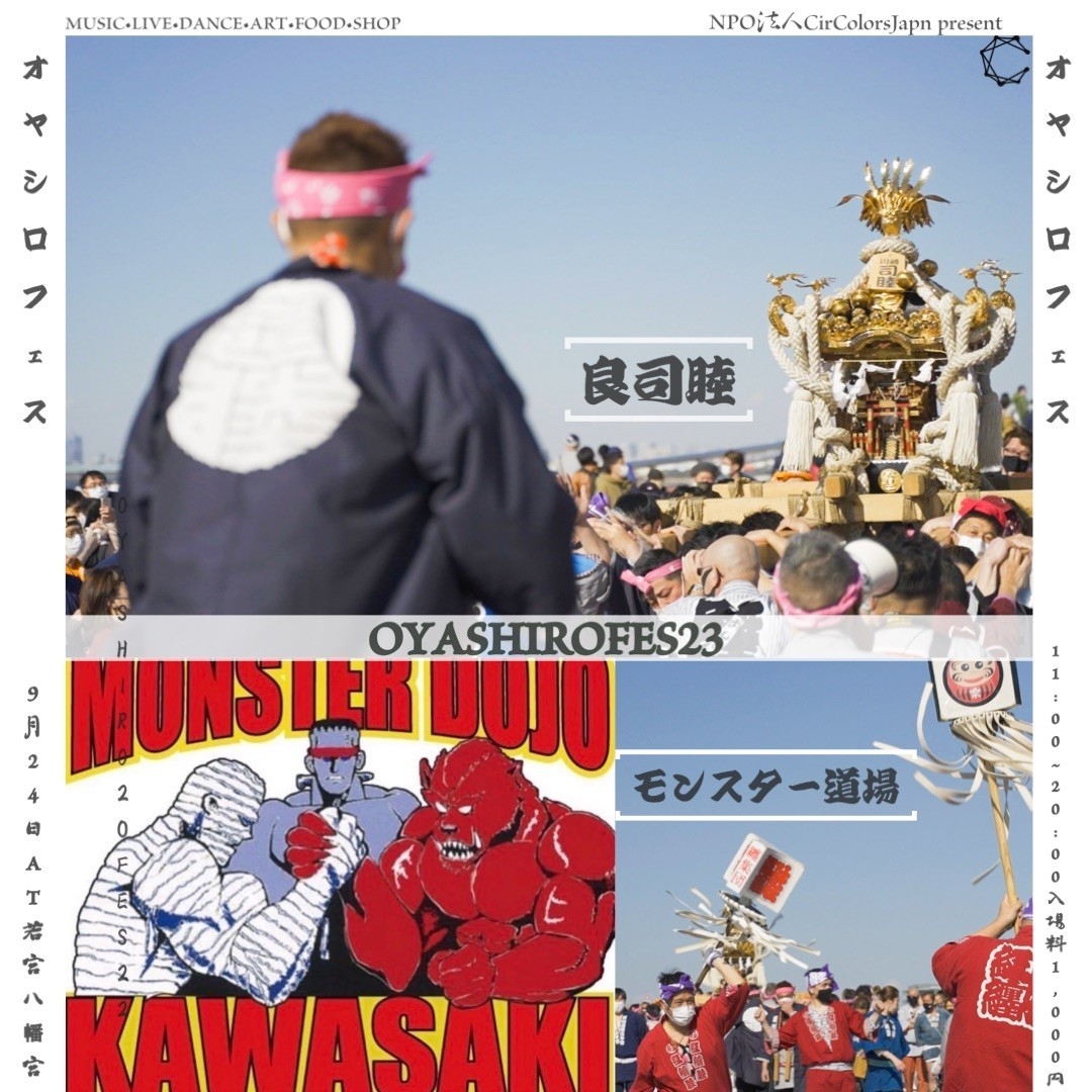 イベント開催を全国で行うNPO法人CirColorsJapan(所在地:神奈川県川崎市川崎区追分町、代表理事:赤根 広志)は、日本発のNewクラブカルチャーが体験できるイベント『OYASHIROFes23』を2023年9月24日(日)に神奈川県川崎市の若宮八幡宮(金山神社)で行います。