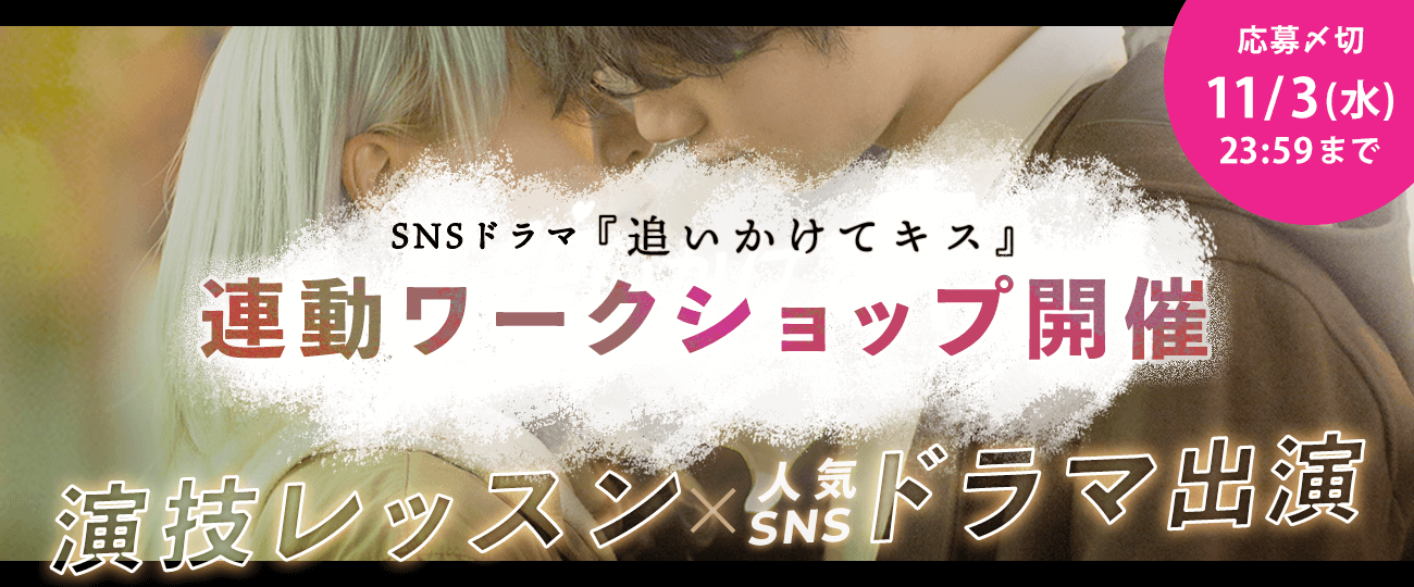 SNSドラマ『追いかけてキス』連動ワークショップ開催!演技を学び「これからのキス」を探す物語にあなたも参加してみませんか?