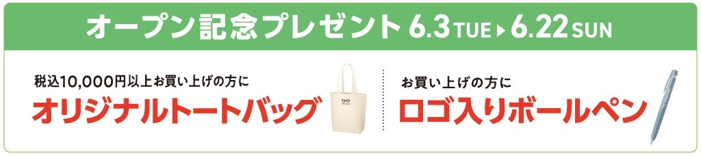 オープンを記念し、期間中お買い上げの方に「オリジナル ボールペン」を、