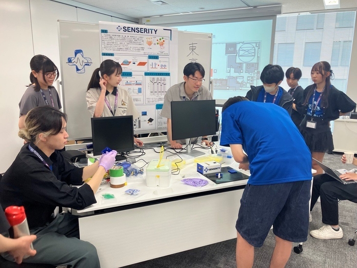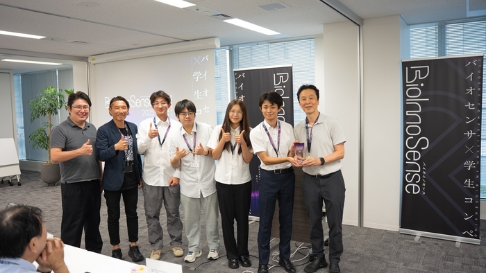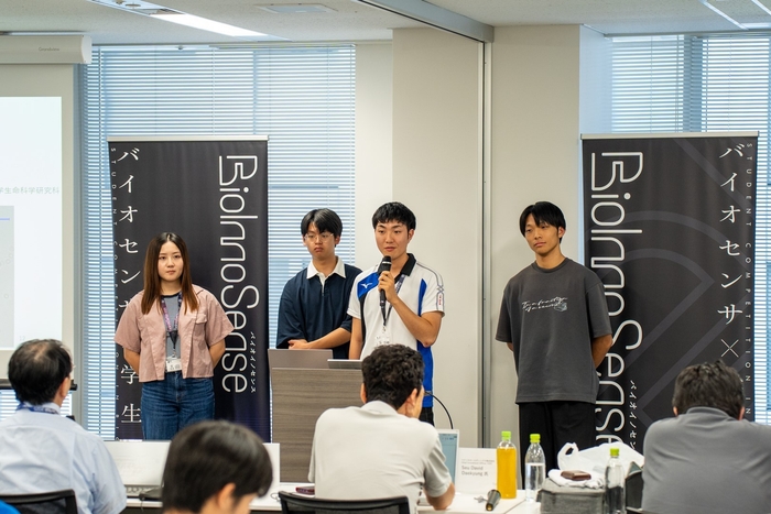 2025年4月の募集に始まり、講義、大学別のチームによる研究開発、中間発表と順調にプログラムが進み、その最終発表及び授賞式が8月31日に行われました。学生たちはわずか3か月ほどで、課題設定からバイオセンサの実機作製、さらにはビジネスプランを練り上げるという難題をこなし、プレゼンテーションに臨みました。最終発表は、1日目のデモンストレーション展示、ディスカッションと、2日目のプレゼンテーションにより審査が行われました。審査員である国内のバイオセンサ研究権威に加え、バイオセンサ関連や、新規事業開発に興味のある企業のお客様にも来場いただき、活発な議論が交わされました。