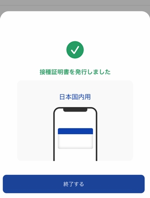 アプリを閉じて再び開くと接種証明書が!これで登録完了です。お疲れ様でした。