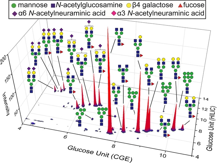 ●新たに開発した二次元分離技術により、微量糖鎖の網羅的な分析を実現