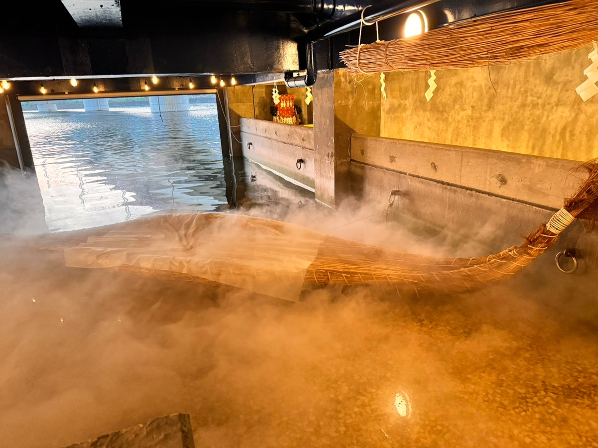 更に、参道のそばには神社の中まで運河が繋がっているだけではなく、そこには世界最古の船とされる葦船(あしぶね)を設置。運河の上に雲海が流れていく様子は圧巻。