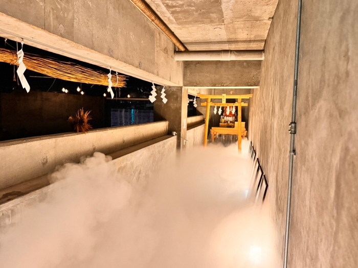地上から地下へ進むと龍神様へ繋がり、そこには神秘的な雲海が湧き上がるようになっています。潮見 龍宮社にしかない雲の中のご参拝をしていただけます。