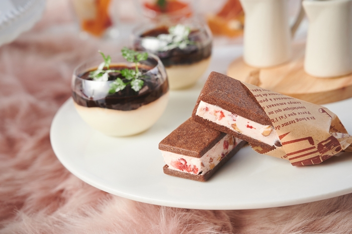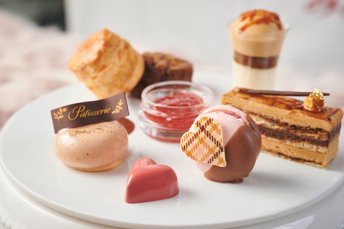 甘さ際立つミルクチョコレートのムースに濃厚なコクのピスタチオクリームを閉じ込めた「メルティショコラピスタチオムース」や、お好みでホワイトチョコモカソースをかけてお召し上がりいただく「ロイヤルコーヒーゼリー」など、ほろ苦いコーヒーと甘いショコラを絶妙に融合したパティシエ渾身のバレンタインスイーツを、スコーンや軽食、紅茶のフリーフローとともにご堪能ください。