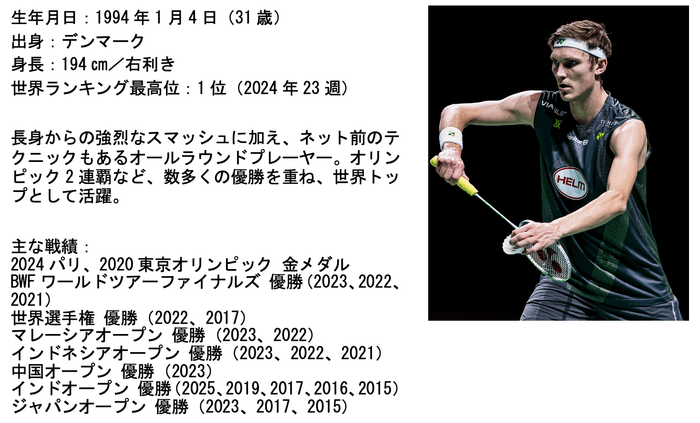 ヨネックス株式会社(代表取締役社長:アリサ ヨネヤマ)は、バドミントン男子シングルスのトッププレーヤーであり、2大会連続オリンピック金メダリストのビクター・アクセルセン選手(デンマーク)と共に創り上げた「ビクター・アクセルセン コレクション」を2025年9月下旬より順次発売いたします。