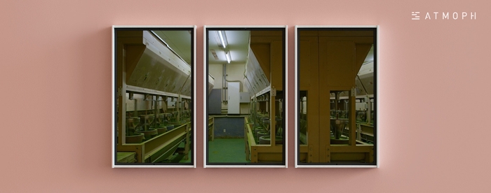 室内の風景映像シリーズ『Next Room』では、窓の向こうに広がるカフェや工房、そして工場を眺めることで誰かと一緒にその場で時間を過ごしているような気持ちになることができます。
