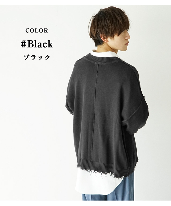 袖と裾部分にささやかなダメージ加工を施し、さりげなくオシャレ見えする1枚。