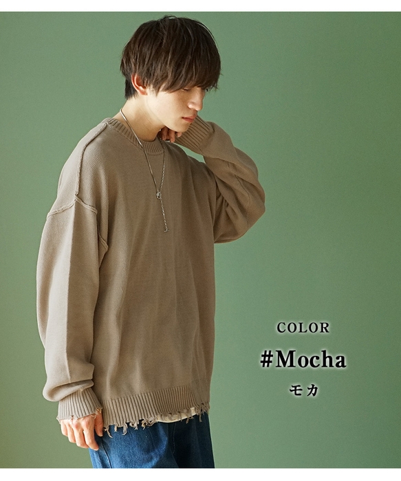 ゆったりとしたオーバーサイズにダメージ加工を施したデザインで、