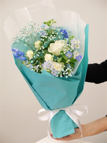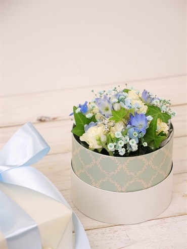 「親愛なるあなたへ」と中々言葉では伝えにくい想いをお花に乗せて届けられるよ親愛なるパートナーと特別な瞬間を過ごせるように、花言葉を通じて愛を深め合えるようなブルーのお花で作成しております。