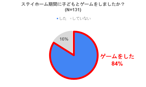 ② ステイホーム期間に子どもとゲームをした家庭は8割(84.0%)