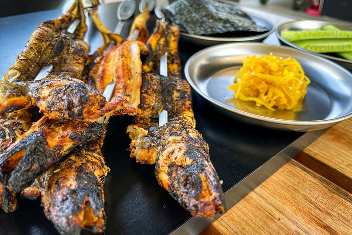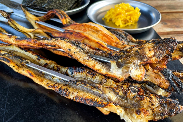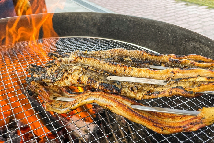 焼き穴子は、穴子を開き串を刺して焼く料理です。