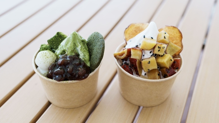 「Piccola」では、秋の旬食材をたっぷり使用した秋限定スイーツ2種を提供いたします。秋の旬食材として定番のさつまいもを、大学芋やさつま芋チップスとしてたっぷり使用。淡路島牛乳を使った冷たいアイスの上に盛りつけた「おいもサンデー」は、口の中で秋の風味が広がり、ひんやりとしたアイスの食感と絶妙にマッチ。さらに、10月から11月に旬を迎える抹茶をふんだんに使用した濃厚な抹茶ソフトの上に小豆と自家製の白玉を乗せた「抹茶のサンデー」は、和の魅力溢れ、抹茶好きにはたまらない逸品です。