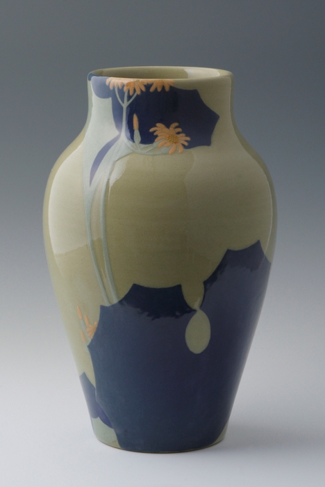 ・青磁石蕗文瓶 七代錦光山宗兵衛作(大正) 個人蔵