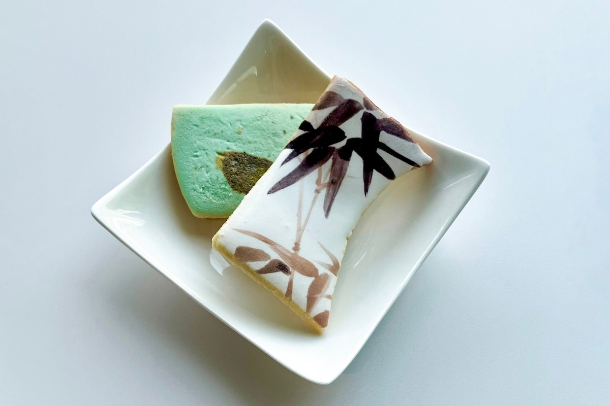 割れた陶器の形のクッキーに、一枚一枚手作業で模様を描きつけた人気のアイシングクッキー。特別展期間中は、大阪市立東洋陶磁美術館所蔵の「飛青磁花生(とびせいじはないけ)」と、上海博物館所蔵の「琺瑯彩墨竹図碗(ほうろうさいぼくちくずわん)」の2種をモチーフにしています。