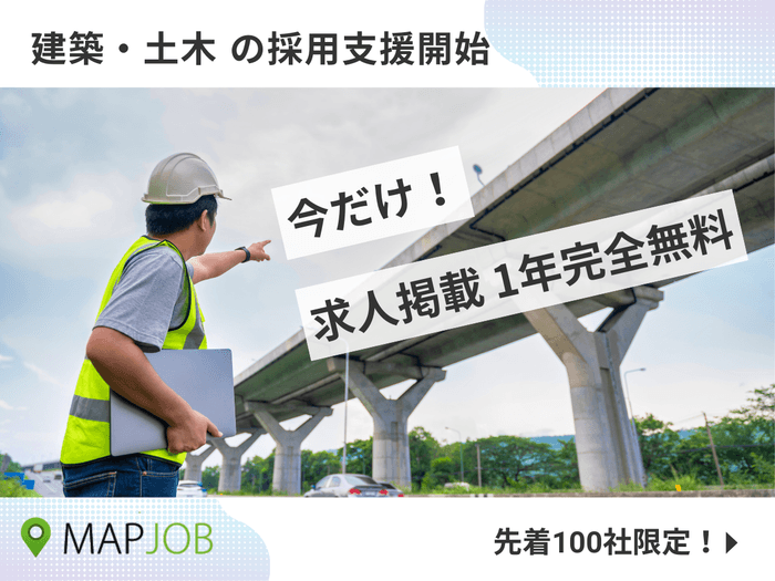【完全無料】建築土木業界の求人掲載が1年間0円|先着100社限定!