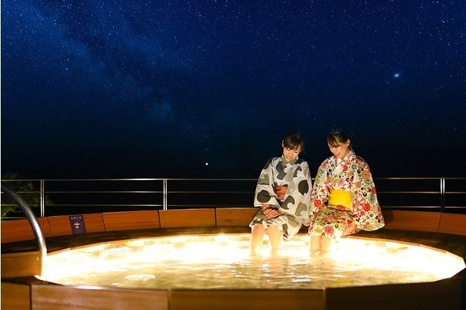 大浴場のある棟の屋上に設えられた【星空テラス】にはごろりと横になれるデッキチェアの他に、足湯が併設されています。