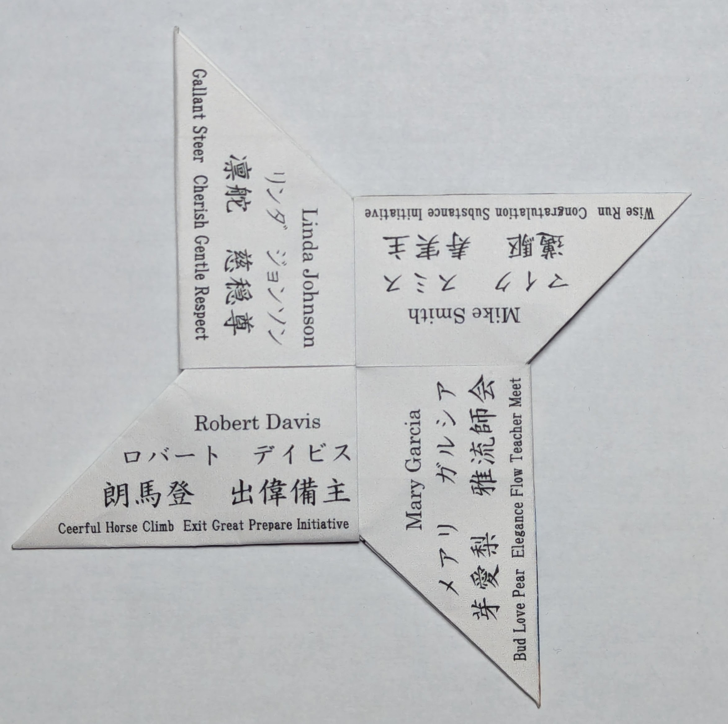 今回、多言語アンケートと一緒にご提供する独自大手裏剣の「ORIKEN」は、15cm四方の折紙ではなく、一般的な印刷用紙を使用し大きくしています。