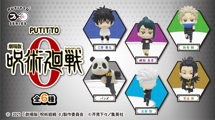 好評につき二次予約を受け付ける商品は、コップのフチに様々なポーズでキャラクターが引っかかる、キタンクラブの人気シリーズ「PUTITTO 劇場版 呪術廻戦 0」(1回500円/税込 https://kitan-capsule-toy-shop.com/store)と、ちょこんと座るデフォルメキャラが一気に揃う豪華フィギュアセット「劇場版 呪術廻戦 0 座る呪術廻戦8体セット」(6,000円/税込 http://kitan.jp/special/movie_jujutsu8/)の2商品です。