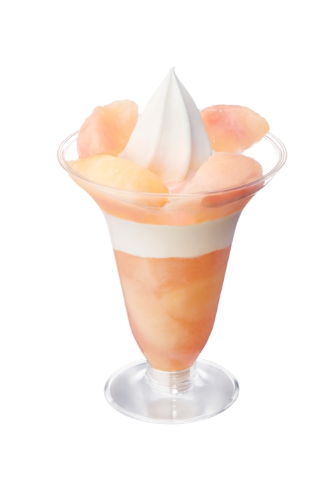 また、白桃果肉を2倍使用した、贅沢な「得盛白桃パフェ」も同時発売しますので、合わせてお知らせいたします。