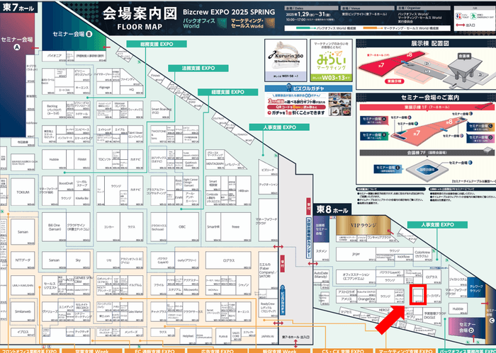 ※小間位置は、下記マップの右下の赤色の「W17-22」箇所になります。