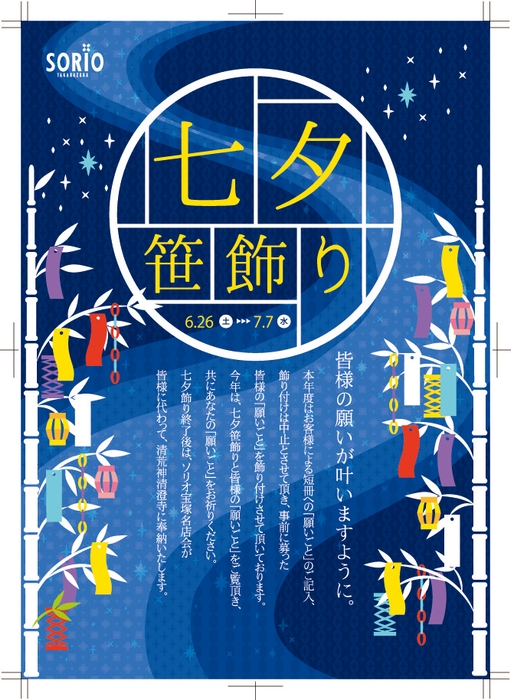クリエイティブ・フラワー・コーポレーション株式会社(本社:大阪府大阪市、代表取締役社長:松村吉章)は、ソリオ宝塚都市開発株式会社様のご依頼のもと、「ソリオ宝塚」にてコロナ禍での感染対策をふまえて「七夕装飾プラン」を企画しました。