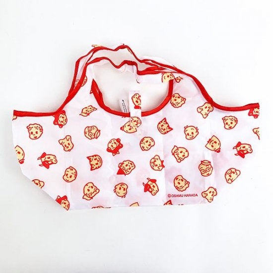 このところ人気の幅広タイプのエコバッグに、オサムグッズのデザインも加わりました。ジルやジャックたちの顔が総柄になっていて、赤いアクセントカラーもキュートなデザインです。