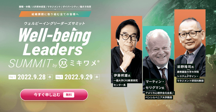 この度、多くの皆様に有益な情報をお届けすることを目的に、「ウェルビーイングリーダーズサミット by ミキワメ」にて、ウェルビーイング応援サポーターとして協賛することにいたしました。