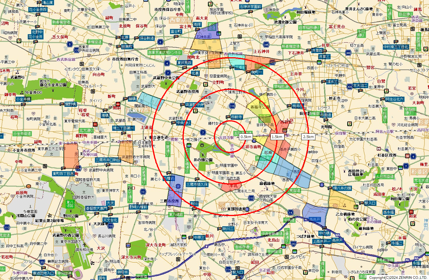 上記画像は、吉祥寺駅への来訪者数が最も多いエリアを抽出したものです。