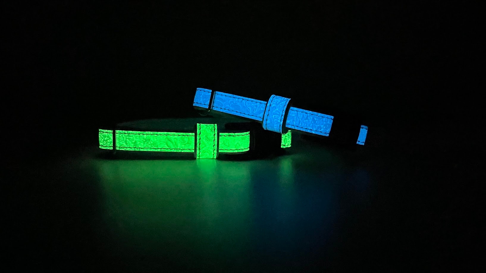 夜の散歩にもっと安心を。蓄光性のレザーを使用した犬猫用首輪 「Luminas for dog/cat」Makuakeにて先行販売開始!