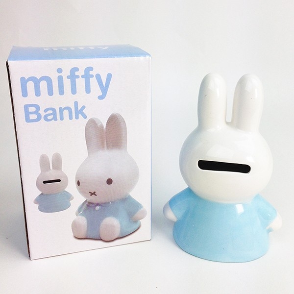 パステルブルーのお洋服がキュートな貯金箱です。こちらのミッフィーはお座りしていますね。陶器製で、もちろんインテリアとしても大活躍!真ん丸なお顔に思わずほっこりです♪