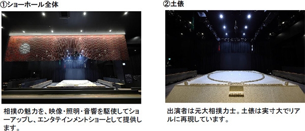 本施設は、「相撲」「食」「エンタテインメント」が融合した新しいショーホールとして、お越しいただいた全ての人々に、はじめて味わう感動と素晴らしい思い出をご提供します。