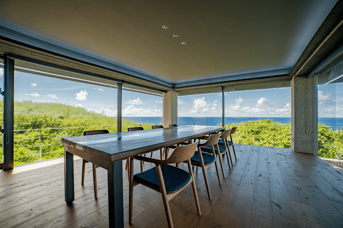 敷地に入ると視界に広がるのは海と空と木々の自然のみという贅沢な空間。