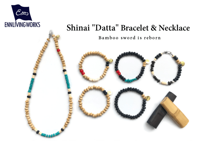 剣道とファッションに長年携わってきた当社が、このようなテーマのもと廃棄処分されるはずの竹刀から産まれたバンブービーズを自社で藍染し、国内生産のブレスレット&ネックレスを作成しました。