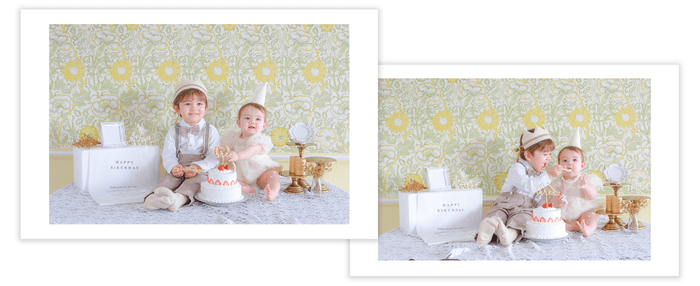 ライフスタジオふじみ野店では名称も「スマッシュケーキ」から「オリジナルケーキ」へ変更し、幅広い年齢のお子様や、さまざまな目的でケーキ撮影をお楽しみいただけます。
