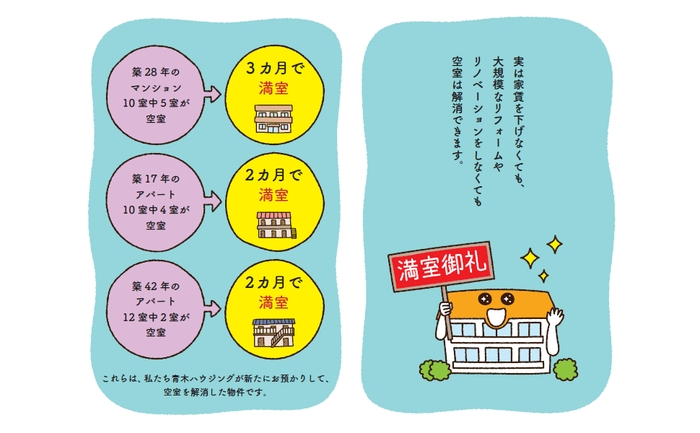 家賃を下げなくても、大規模リフォームしなくても、空室は埋まる! 入居率95% オーナー満足度99%!!