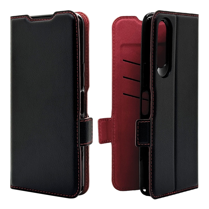 液晶画面側と背面側の両面を保護できる持ちやすい手帳型ケースです。