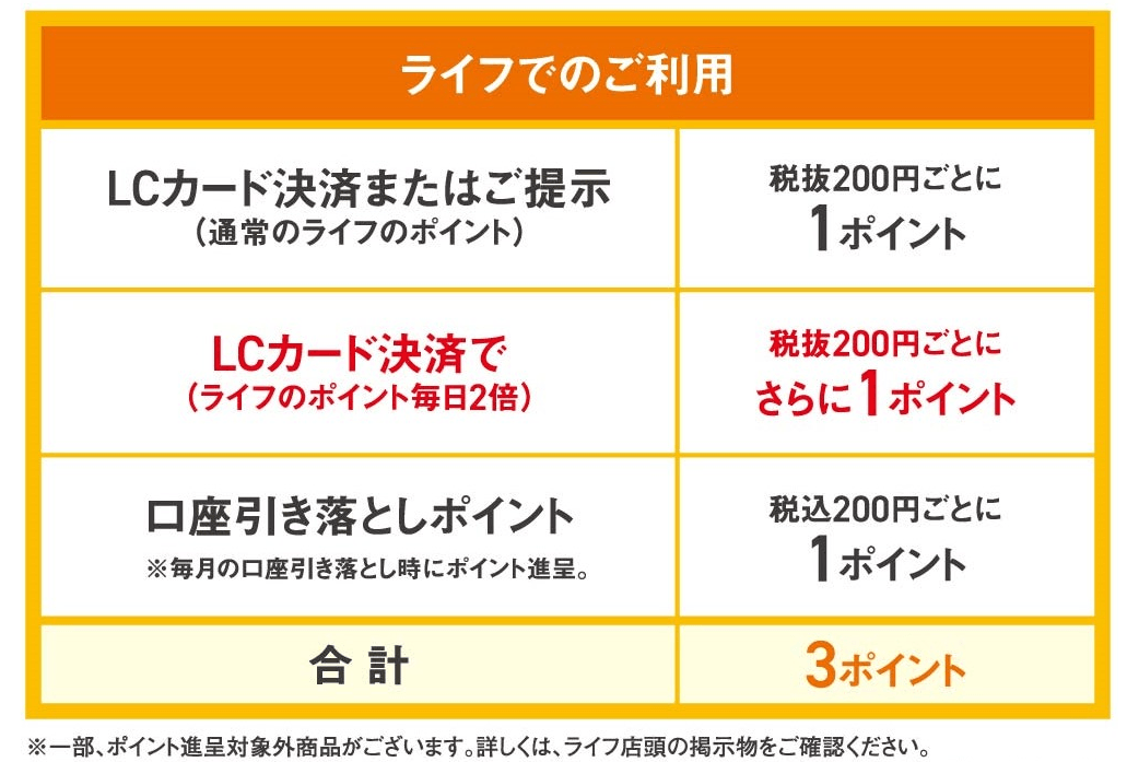 さらに、2022年3月1日より、「LC JCBカード」決済限定で税抜200円ごとにさらに1ポイントを進呈し、ポイント倍率が毎日2倍になりました。