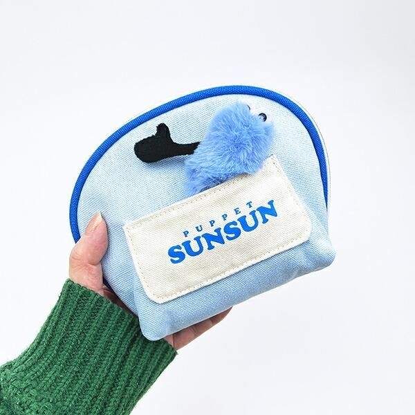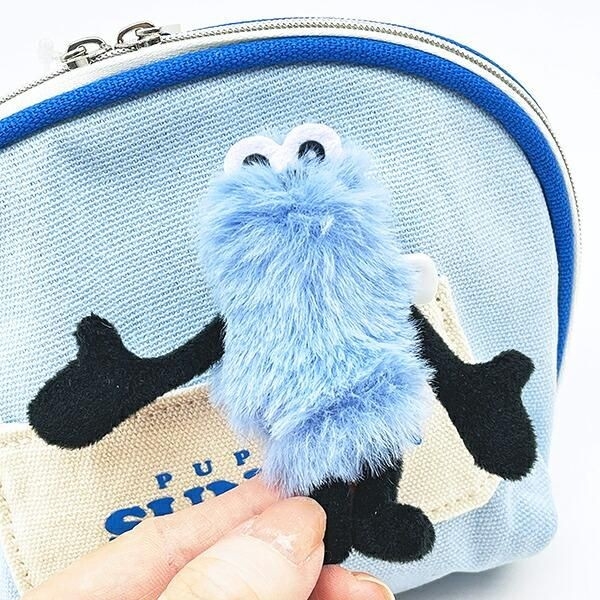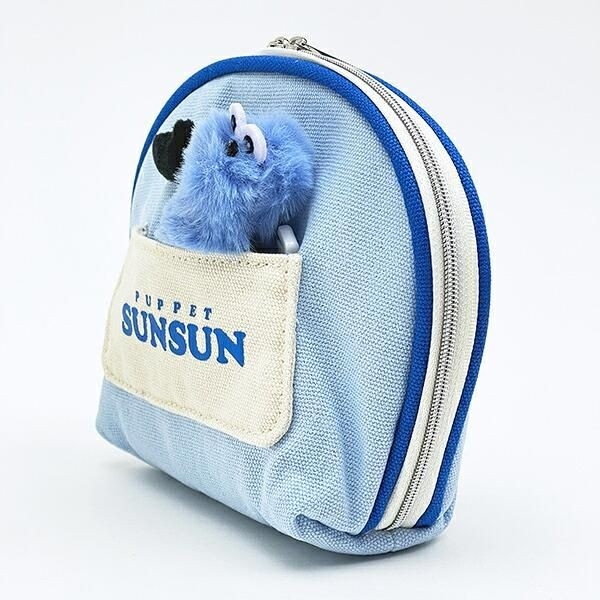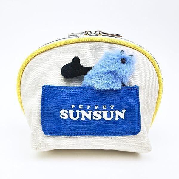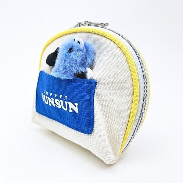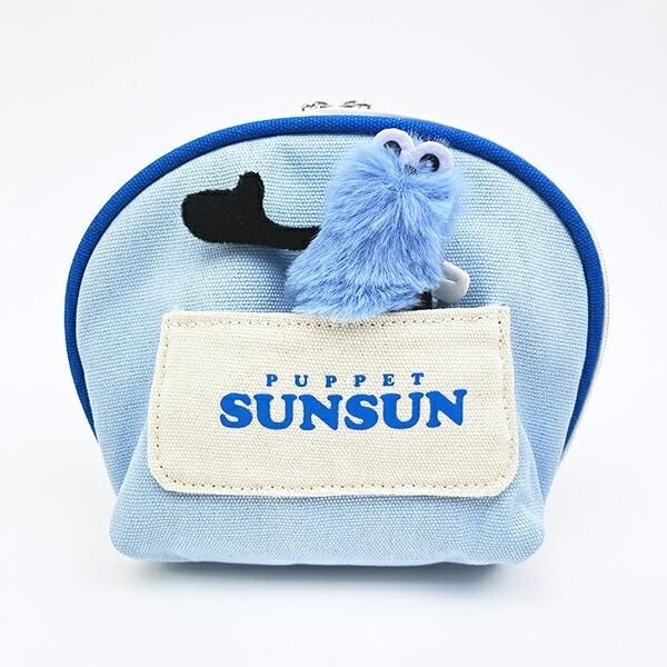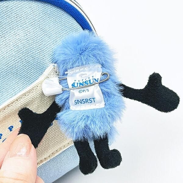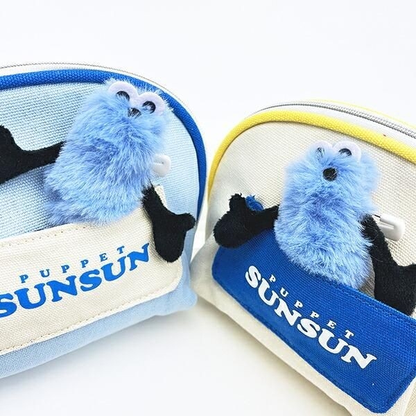 今回ご紹介するのは、SNS上で大人気な青のもこもこしたシルエットが特徴的なキャラクター「パペットスンスン」をモチーフにした生活アイテムをご紹介させていただきます。今回は、ポケットに収納できるぬいぐるみバッジが可愛らしすぎるぬいぐるみバッジ付きポーチです。