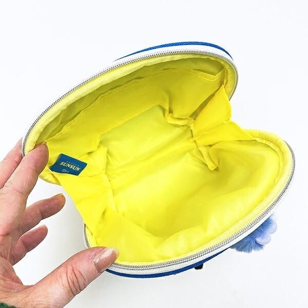 イエローのお色違いもございます。スンスンがポケットからひょっこり飛び出している姿に癒し度がはんぱではありません、、、!ぬいぐるみ付ポーチはなかなか見ることはないので存在感も絶大です。
