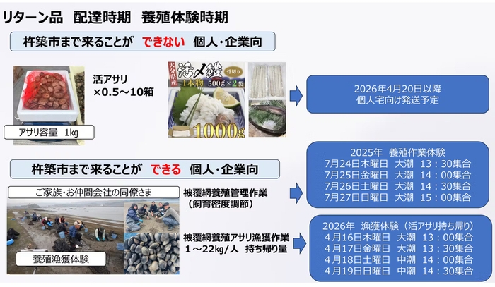 来年2026年4月20日以降にアサリをご自宅にクール宅急便にて活アサリをお届けいたします。