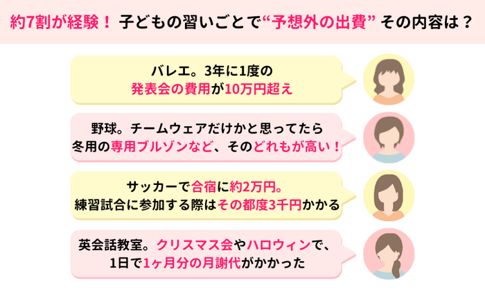 <7割近くの家庭が予想外の出費あり>