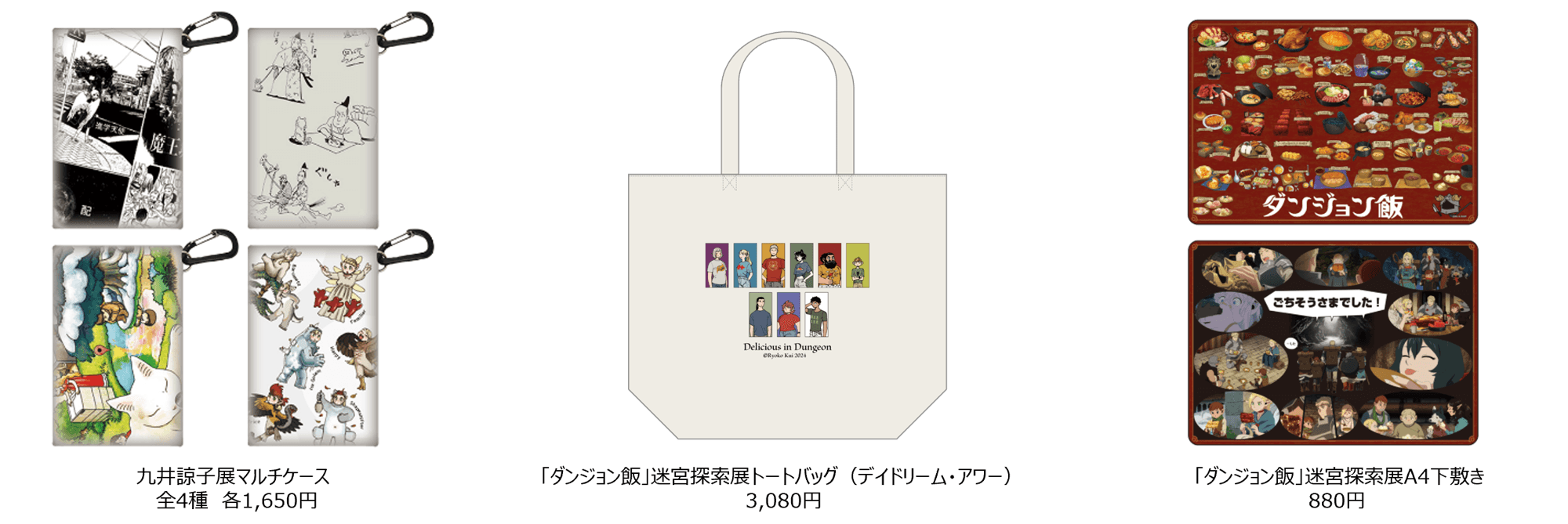また、九井諒子展と「ダンジョン飯」迷宮探索展オリジナルグッズも多数展開。「ダンジョン飯」迷宮探索展A4下敷き、トートバッグや、九井諒子展マルチケースといった各地の巡回でも人気のグッズをはじめ、130点以上がラインナップ。こちらもお見逃しなく(グッズは売り切れる場合があります。商品詳細は展覧会ホームページをご確認ください)。