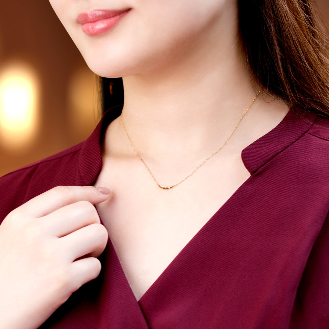このほどの新作は、“光”がテーマ。変化が激しい時代だからこそ、いつでもあなたをやさしく照らすダイヤモンドの“光”をお守りに――。首元を明るく彩るネックレスは、オンライン会議にも華を添えるアイテムです。