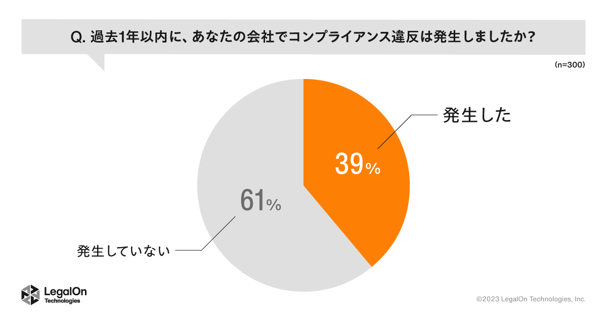 AI契約審査プラットフォーム「LegalForce」、AI契約管理システム「LegalForceキャビネ」を提供する株式会社LegalOn Technologies(本社:東京都江東区 代表取締役 執行役員・CEO:角田 望)は、コンプライアンス関連業務に携わる300名の会社員、会社役員を対象に「企業のコンプライアンス実態調査」を実施しました。